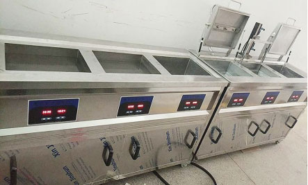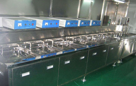 全自動(dòng)超聲波清洗機(jī)是專為清洗量大、清洗要求高、使用溶劑作為清洗介質(zhì)的工件設(shè)計(jì)的專用清洗設(shè)備。設(shè)備生產(chǎn)主線一般有有1-2個(gè)超聲波清洗槽、1-2個(gè)熱水漂洗槽、1-2噴淋槽、1個(gè)烘干槽等工位組成,其工作原理是利用超聲波滲透力強(qiáng)的機(jī)械振動(dòng)沖擊工件表面并結(jié)合清洗劑的化學(xué)除油、去污作用使工件表面潔凈。